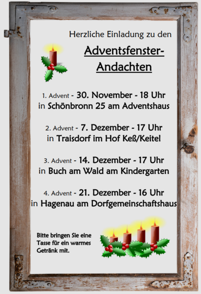 Wir laden Sie herzlich ein, die Gottesdienste in unseren Kirchen und andere Veranstaltungen unserer Kirchengemeinden zu besuchen. Aktuelle Termine finden Sie hier: