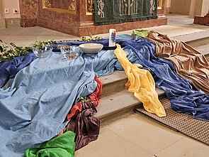Wir feiern in der Pfarrei Oberdachstetten einmal im Monat einen Gottesdienst für Große und Kleine Menschen. Mit Liedern, Geschichten und Aktionen, die den Großen und den Kleinen Spaß machen und ihnen Inspiration für ihr Leben und ihren Glauben im Alltag geben. So haben wir beim Tauferinnerungsgottesdienst den Fluss Jordan zweitweise in die Kirche nach Oberdachstetten verlegt oder beim Dorffest gemeinsam eine Murmelbahn für den Segen Gottes gebaut.